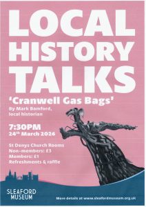 St Denys’ Church Room at 7.30pm. Members of Sleaford Museum Trust £1 and Non-members £3 (Click HERE for link to Sleaford Museum Trust website).